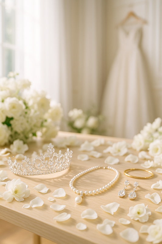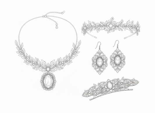 Nos collections allient raffinement, qualité et émotion, afin que chaque mariée trouve les pièces qui lui ressemblent : diadèmes délicats, boucles d’oreilles éclatantes, bracelets symboliques ou colliers discrets. Nous croyons qu’un bijou de mariage ne se choisit pas par hasard : il se ressent, il se vit, et il devient le témoin d’un jour inoubliable.
