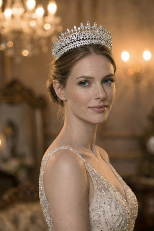 Un diadème inspiré des mariages kurdes, pour une allure lumineuse.